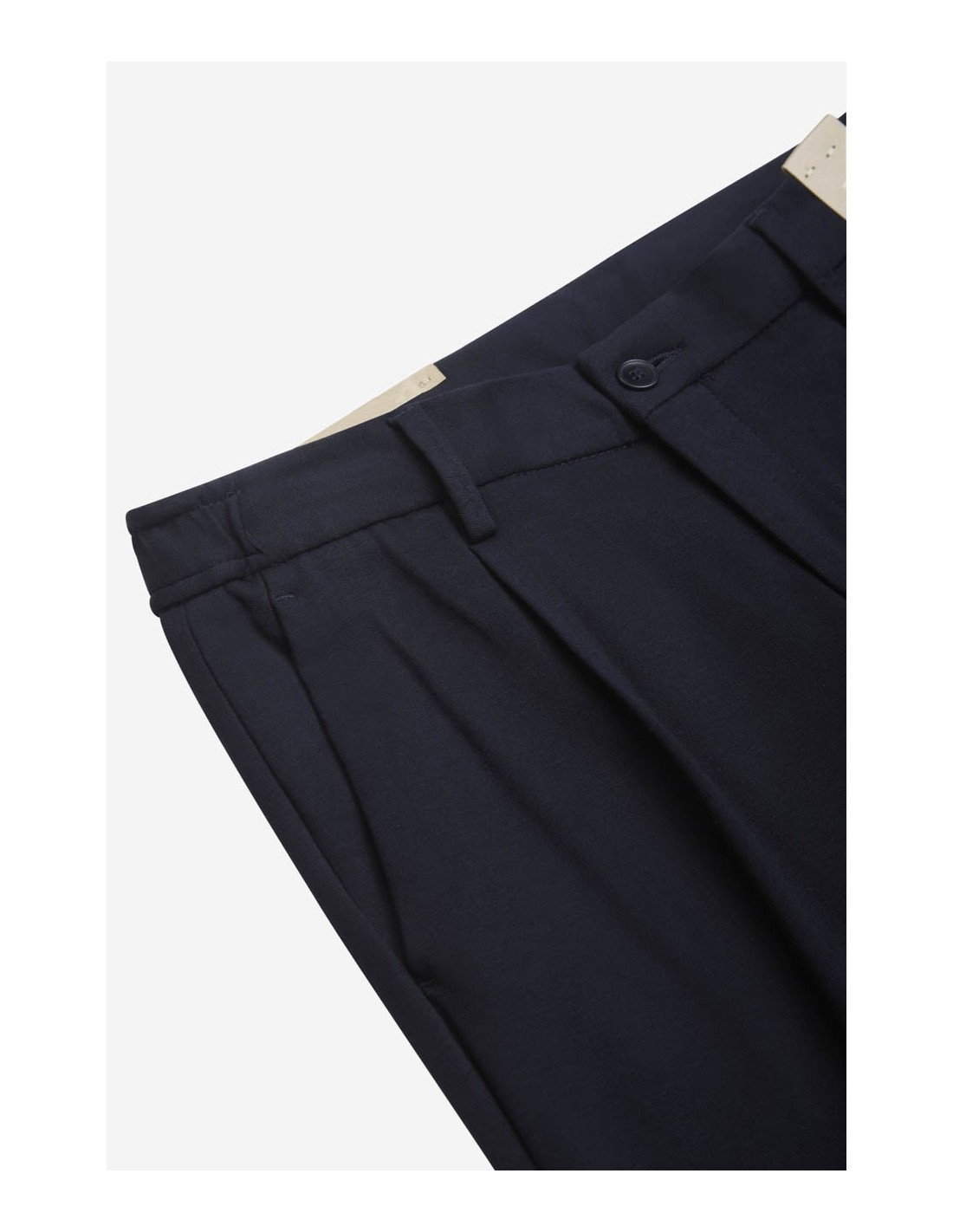 Il pantalone Sasap riprende lo slim fit del classico modello Sasa, distinguendosi per le due pinces frontali che aggiungono un tocco sartoriale. Realizzato in jersey, è dotato di tasche laterali, tasche posteriori con pattina e chiusura frontale allungata con cerniera e bottone.