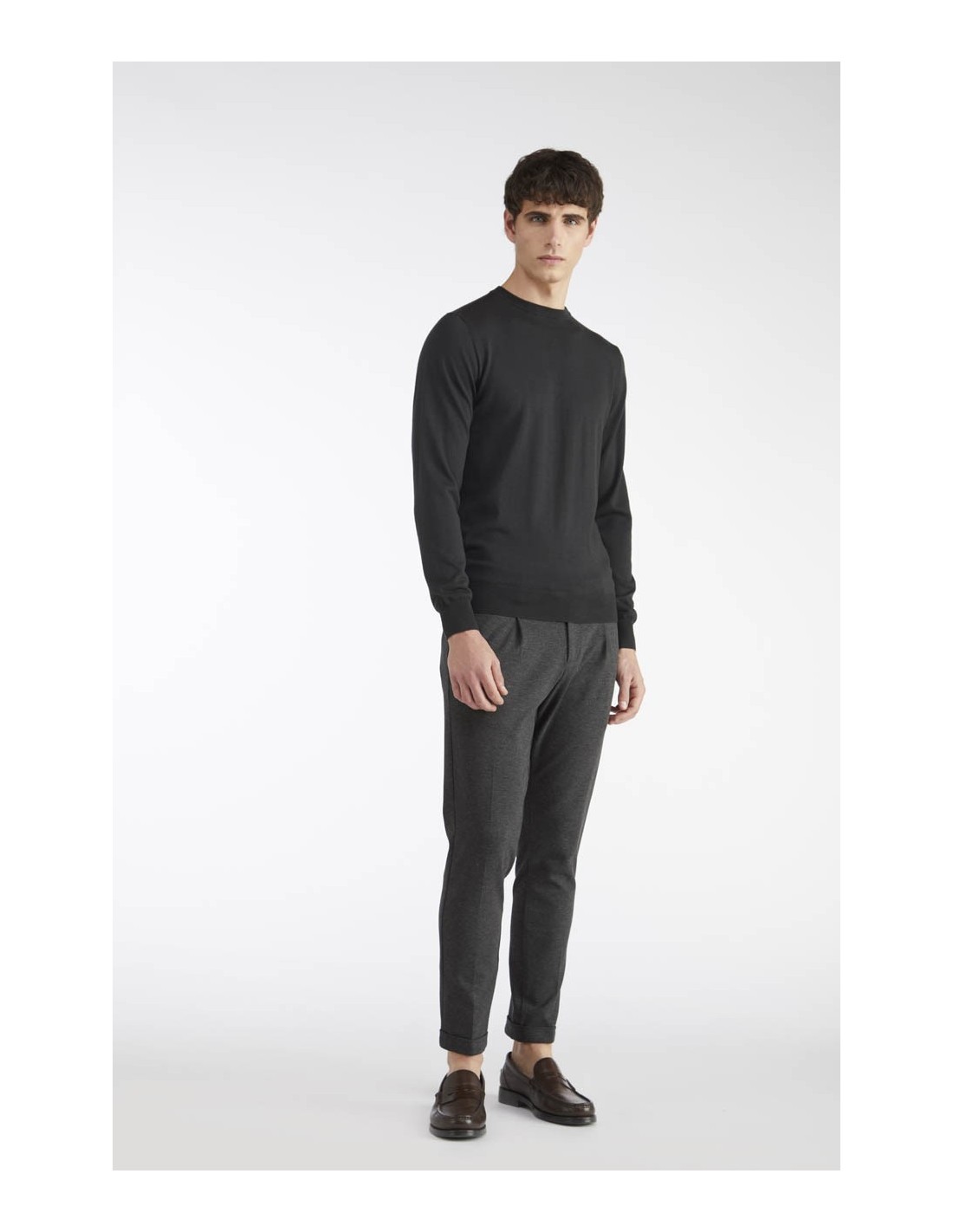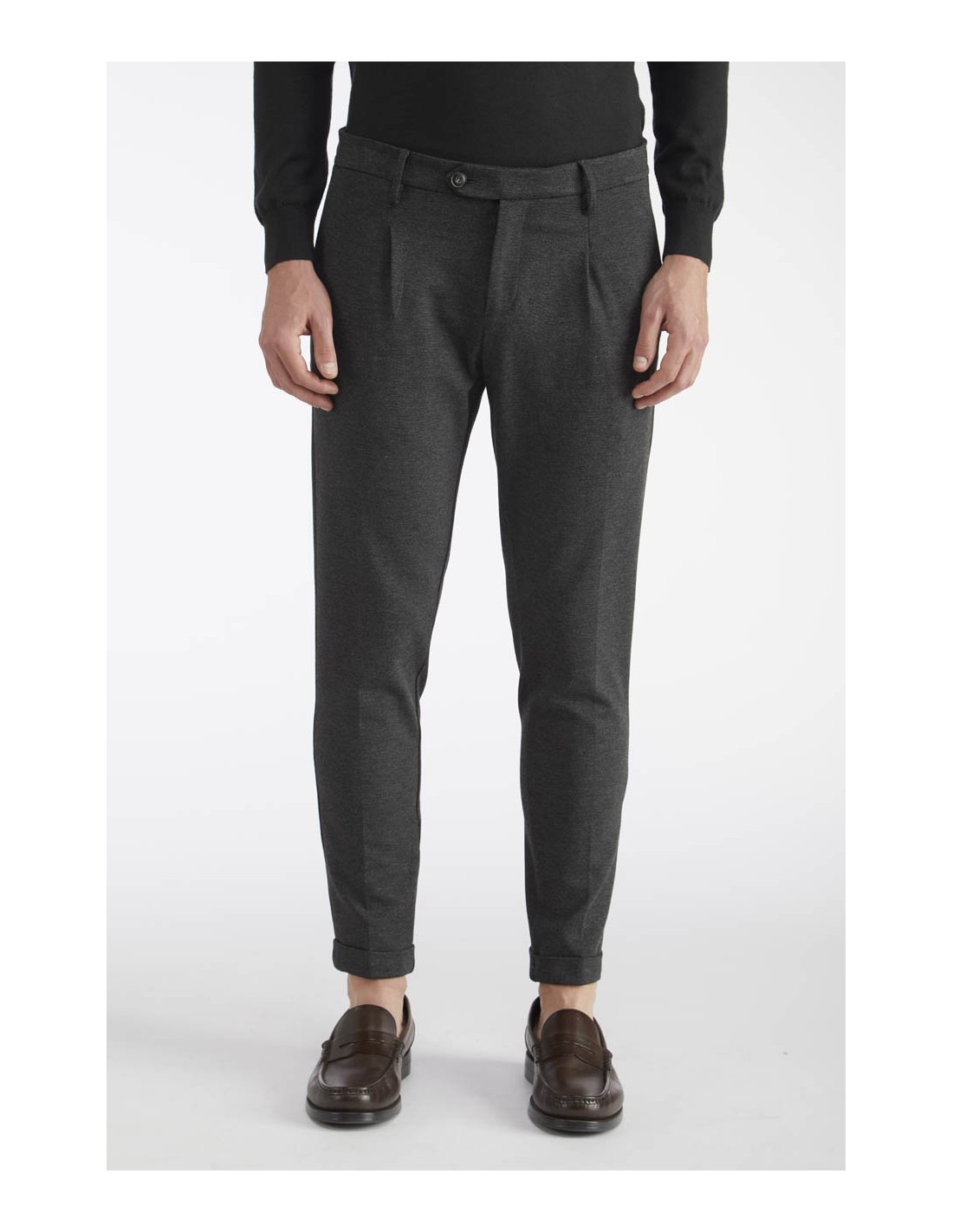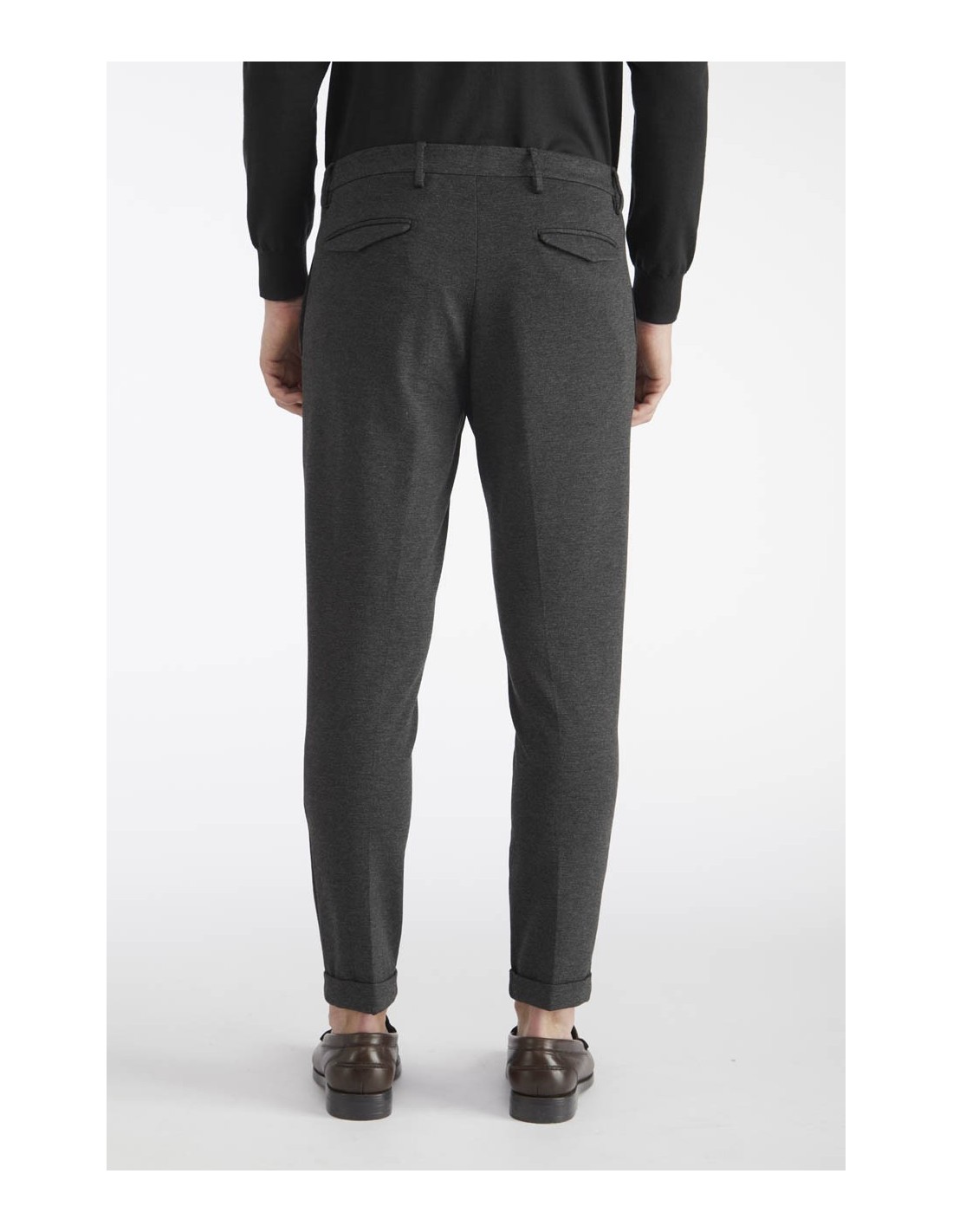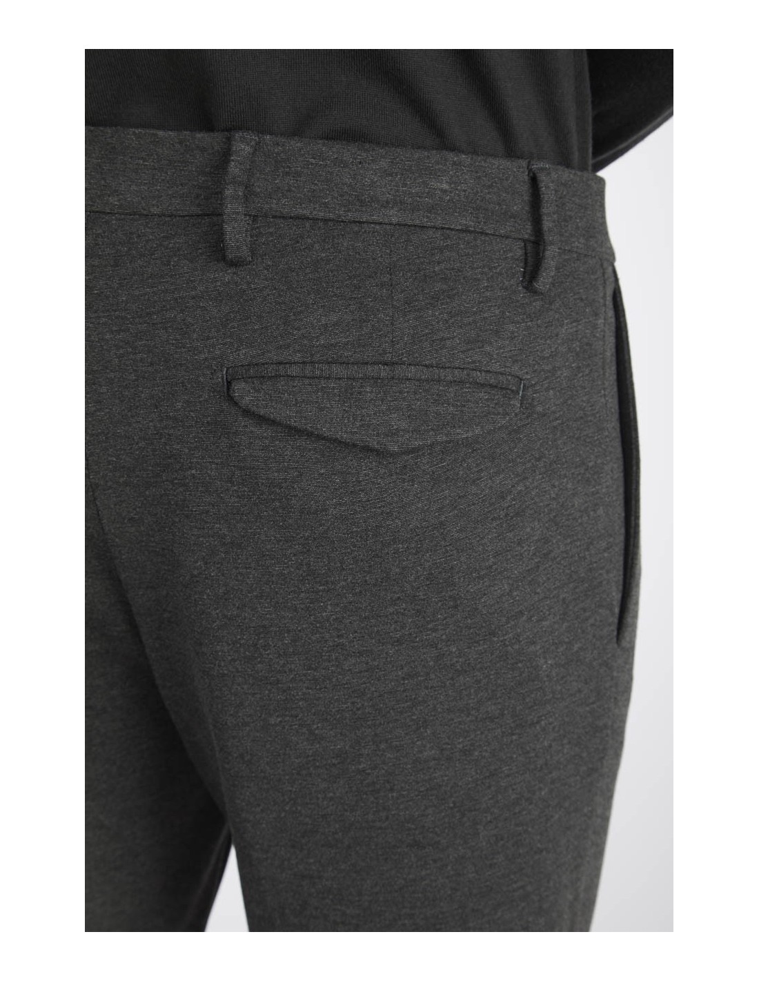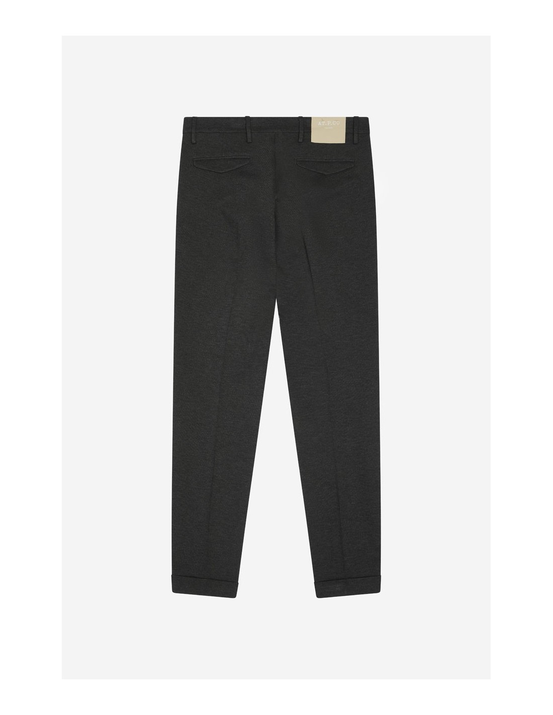 At.p.coIl pantalone Sasap riprende lo slim fit del classico modello Sasa, distinguendosi per le due pinces frontali che aggiungono un tocco sartoriale. Realizzato in jersey, è dotato di tasche laterali, tasche posteriori con pattina e chiusura frontale allungata con cerniera e bottone.