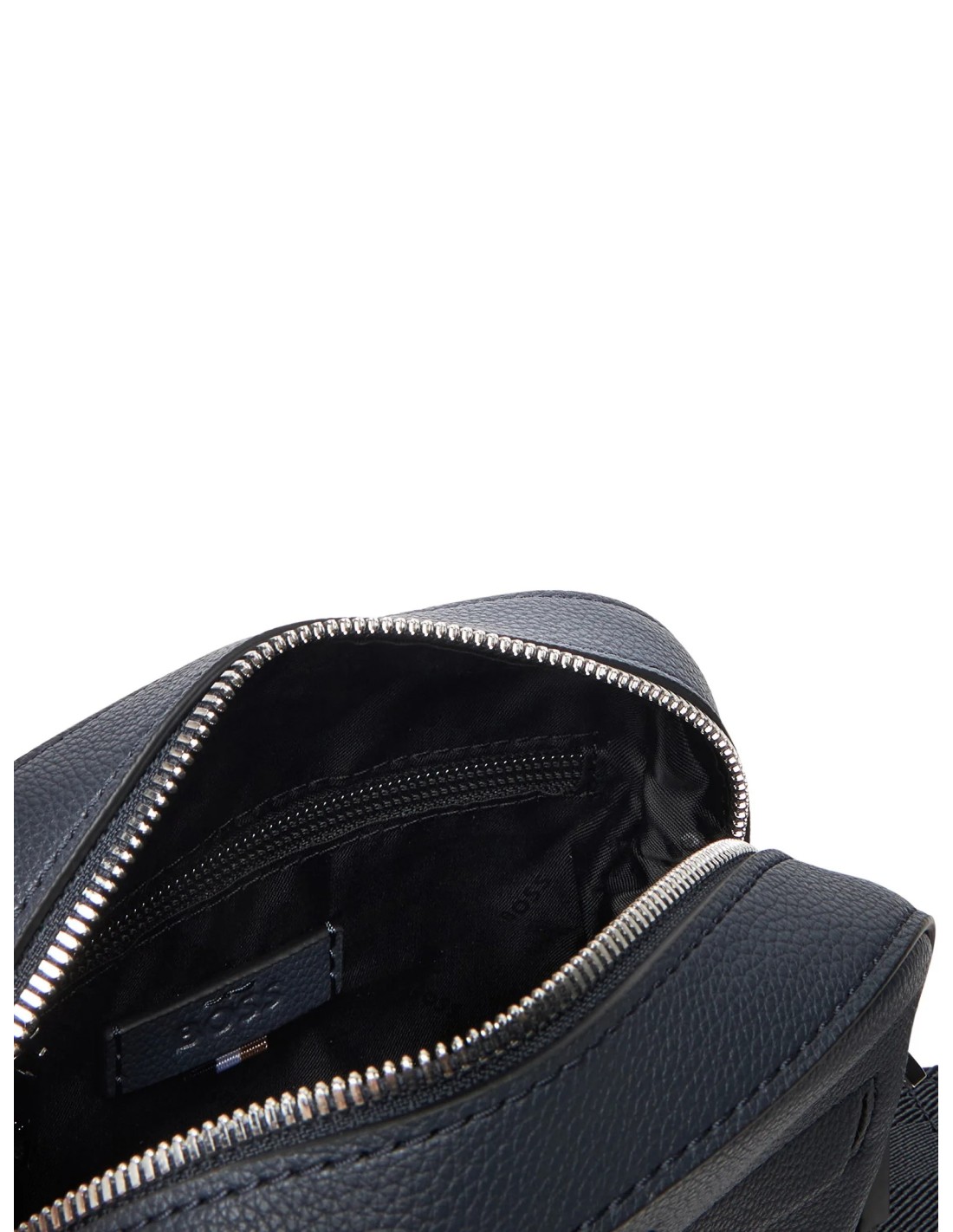 BossIn uno stile reporter quotidiano, questa borsa BOSS Uomo è realizzata in materiale goffrato. Striscia tipica del marchio sotto un logo in rilievo. Dimensioni: 18 x 16 x 6 cm.