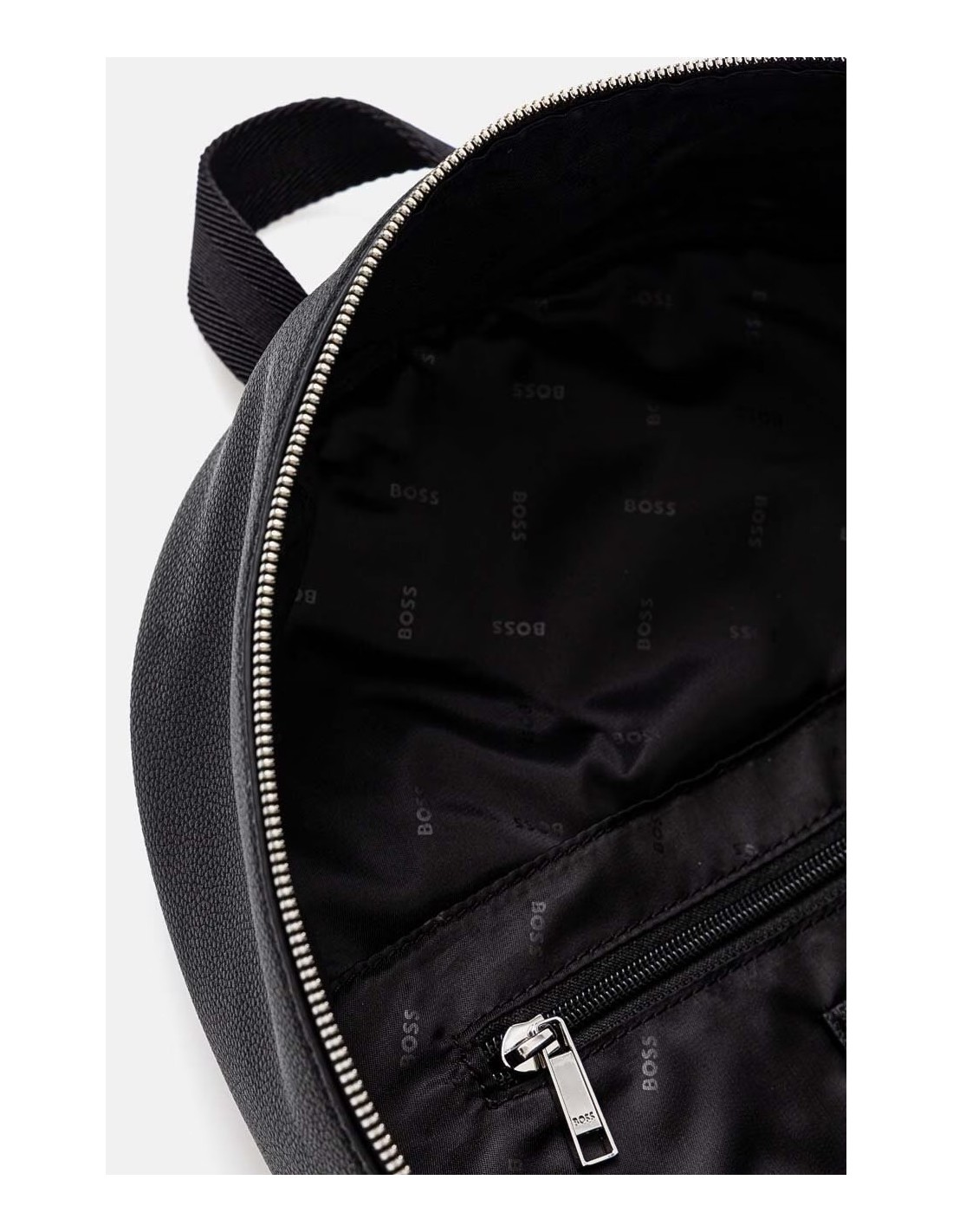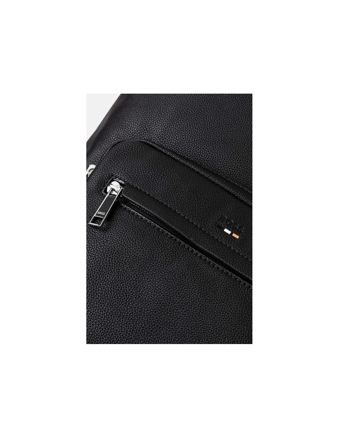 BOSS zaino uomo colore nero, realizzato in pelle sintetica. Il prodotto contiene materiali di fibra riciclata con imbottitura morbida nella zona posteriore per un comfort aumentato. Modello con fodera e compatibile con formato A4