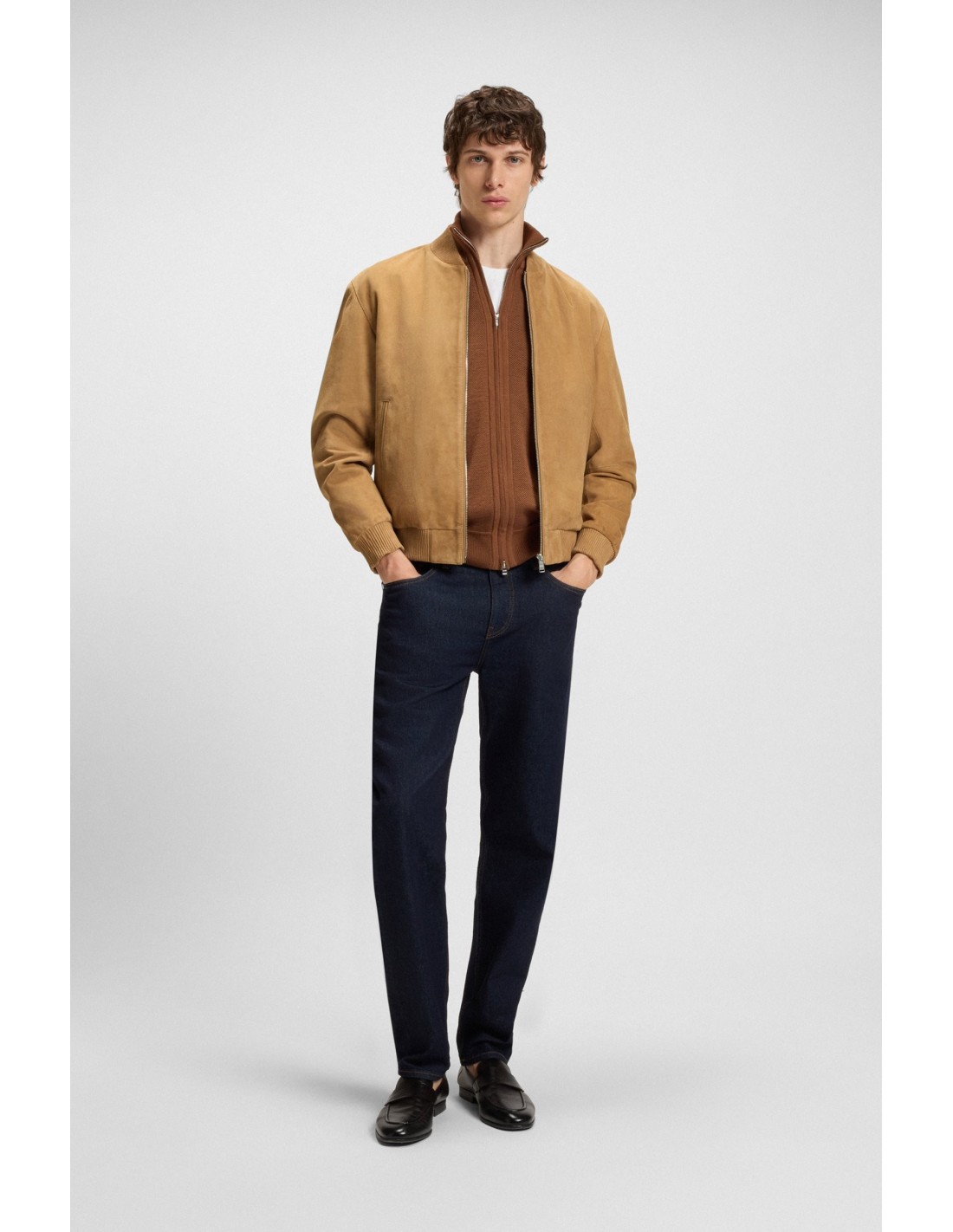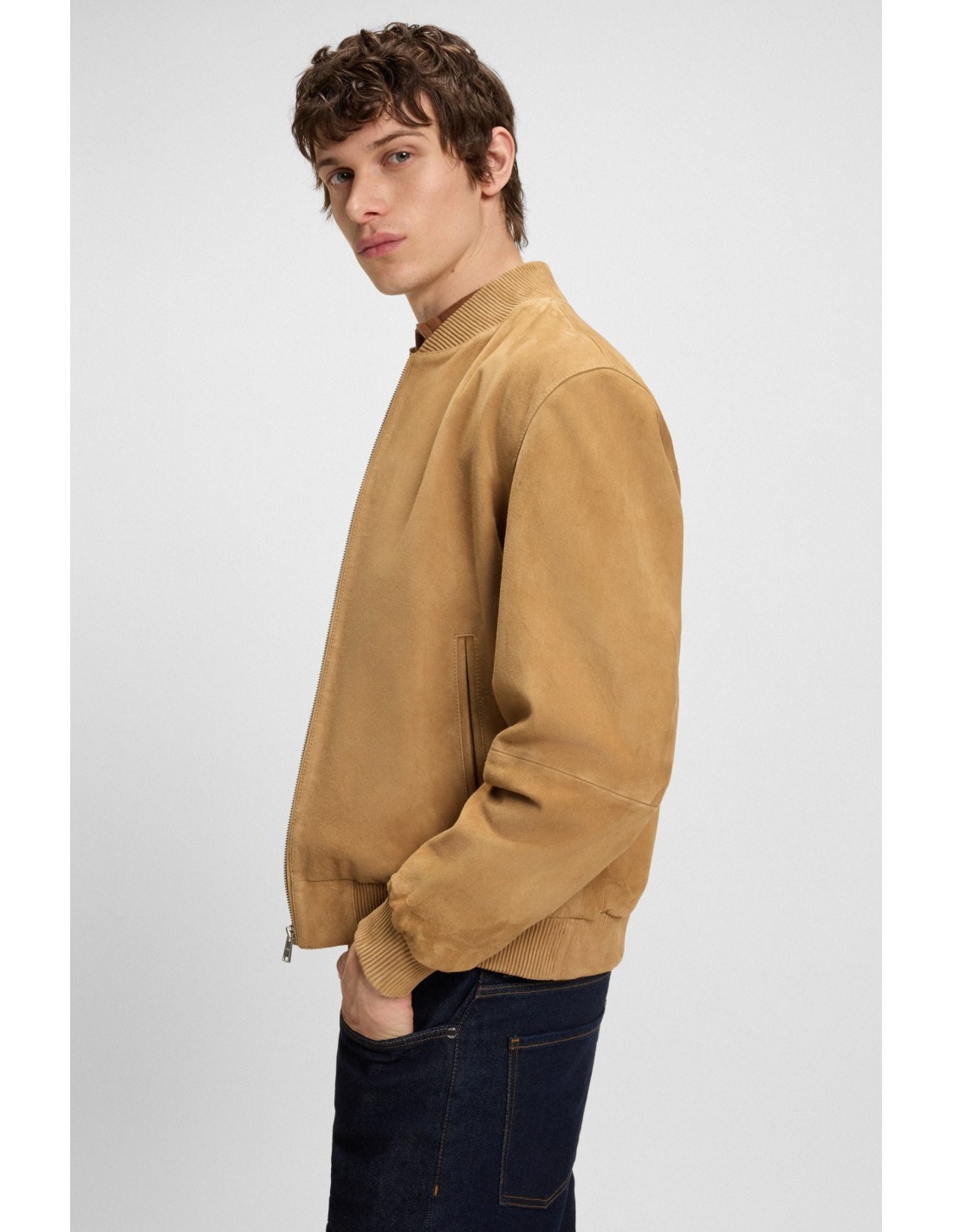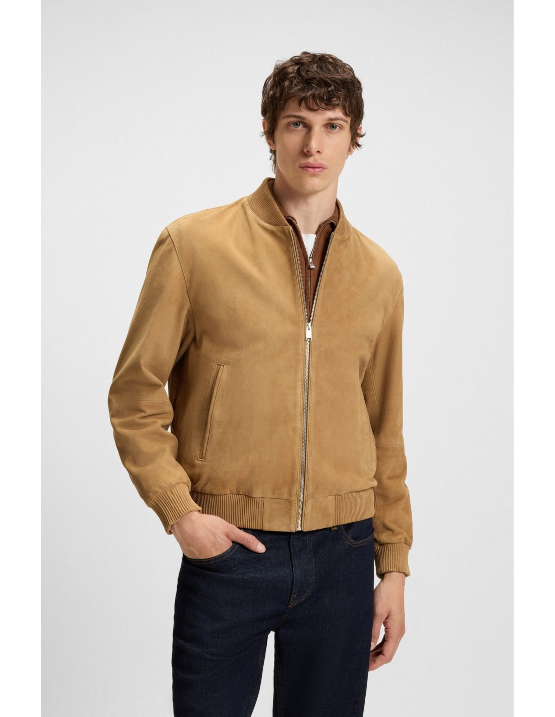Rinnova il tuo guardaroba quotidiano con la pregiata pelle scamosciata e le rifiniture a coste di questa giacca BOSS Uomo. Chiusura con zip. Comoda vestibilità regular fit. Questo prodotto contiene almeno l'80% di materie prime di qualità superiore. La pelle usata per realizzare questo prodotto proviene da concerie certificate.