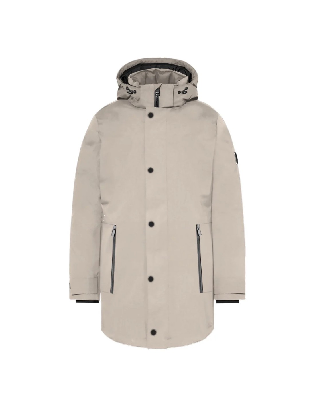 Giubbino lungo modello parka realizzato in tessuto tecnico liscio, pensato per offrire protezione e comfort nelle giornate più fredde. Il design funzionale è completato da un ampio cappuccio con interno in piumino matelassé e da dettagli pratici che garantiscono vestibilità regolare e protezione dagli agenti atmosferici.