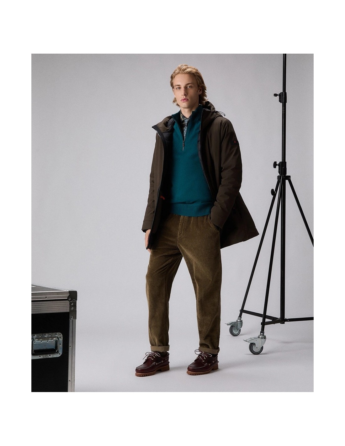 PeutereyOvercoat in tela di poliestere stretch, accoppiata con un jersey soffice e caldo. L’imbottitura in Thermoplume, garantisce calore, leggerezza, morbidezza e comprimibilità. Il design essenziale e funzionale è completato da polsini antivento, cappuccio con tiranti regolabili, doppia zip centrale nera. Il trattamento idrorepellente PFC Free protegge dalla pioggia leggera senza impiego di sostanze dannose per l’ambiente. Capo versatile, studiato in ogni minimo dettaglio per vivere la stagione fredda con il massimo del comfort senza rinunciare allo stile.